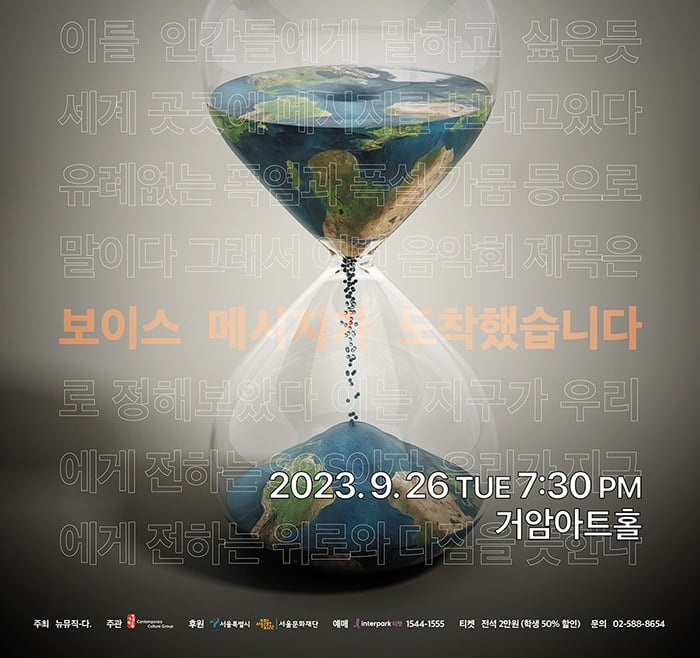 한 줄의 선율은 전통과 현대, 동양과 서양의 경계를 넘나들며 새로운 결을 만들어가고, 가야금의 세밀한 음, 타악기의 역동적인 리듬, 현악기의 깊은 울림이 어우러져 익숙한 악기들이 낯선 방식으로 만나는 새로운 울림의 여정을 펼쳐 보인다.